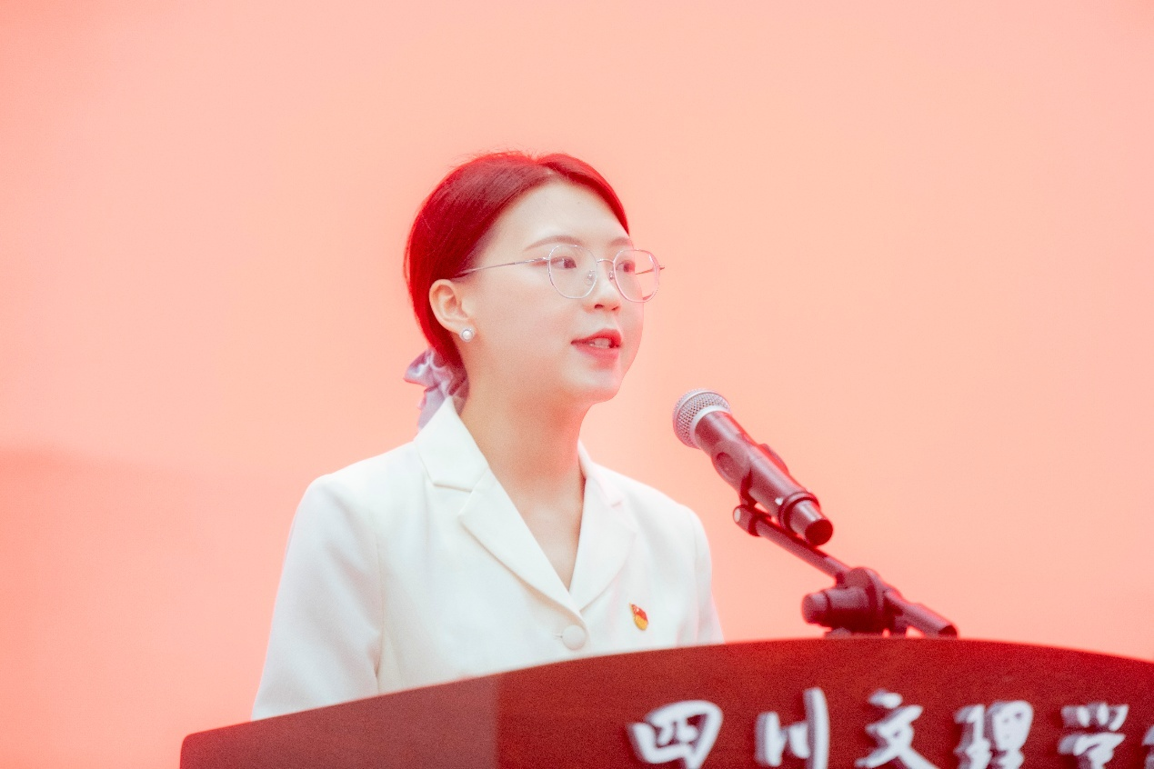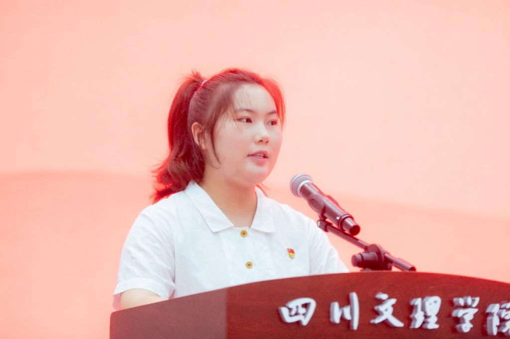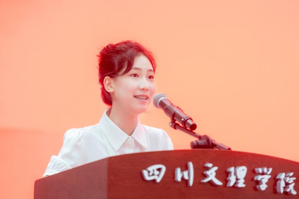 文学与传播学院新生代表曾语萱同学分享用镜头记录家乡的感悟,承诺将秉承“服务区域”为使命,用传媒讲述身边的故事,将青春的论文写在家乡的大地上。