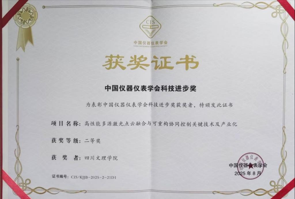 2025年8月6日,2025年度中国仪器仪表学会科学技术奖获奖名单正式公布。由我校虞静团队完成的“高性能多源激光点云融合与可重构协同控制关键技术及产业化”项目,荣获科技进步二等奖。这一成果标志着我校在激光遥感与智能控制领域的关键技术及产业化应用方面取得重要突破。