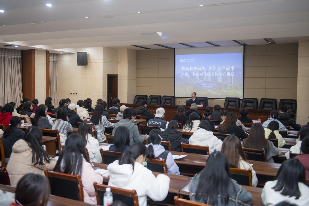 11月20日,党委书记黄涛在弘德楼一楼会议室为学校第九批校史宣讲员讲授思政课,强调要用好用活校史资源,充分发挥校史育人价值,并勉励同学们传承校史薪火,讲好文理故事,争做一名新时代优秀校史宣讲员。