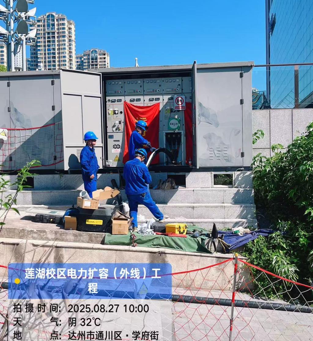 为切实保障校园能源供给,满足师生教学科研与生活用电刚需,莲湖校区西区电力扩容(外线)工程已竣工投用,全面夯实校园电力保障底座,以稳定可靠的能源支撑,筑牢校园平稳运行的坚实防线。