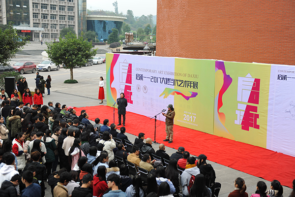 12月6日,“启•承2017大修当代艺术年展”在我校美术馆隆重开幕。党委书记王成端、副校长李壮成、达州日报社社长何南观、达州市文联副主席谢军、达州市美协主席龙飞,以及来自北京、成都、重庆、达州的艺术家代表出席了开幕式。美术学院院长刘承川教授主持开幕式。