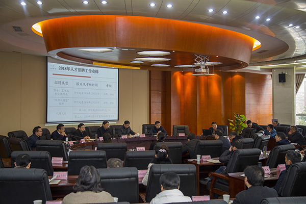 人事处负责人介绍了2018年人才招聘计划、工作安排及相关政策。各二级学院党政负责人、机关各职能部门负责人参加会议。