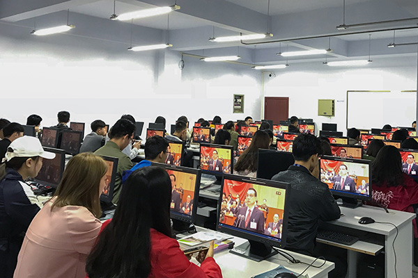 10月18日上午9时,中国共产党第十九次全国代表大会在人民大会堂隆重召开,习近平总书记代表十八届中央委员会作报告,大会的主题是:不忘初心,牢记使命,高举中国特色社会主义伟大旗帜,决胜全面建成小康社会,夺取新时代中国特色社会主义伟大胜利,为实现中华民族伟大复兴的中国梦不懈奋斗。我校万余名师生通过各种途径收看收听党的十九大开幕式盛况。
