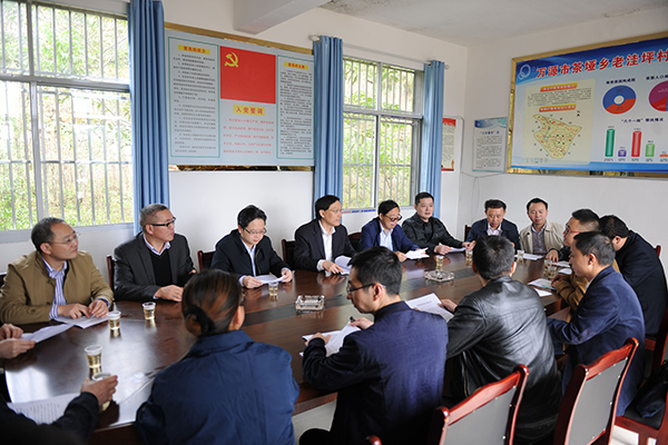 党委书记王成端、校长刁永锋、党委副书记侯忠明、党委副书记、纪委书记雷超、副校长徐晓宗一行调研老洼坪村异地扶贫搬迁户的住房、生产生活情况,听取村委会、乡政府关于该村脱贫攻坚情况。老洼坪村总人口345户1296人,建档立卡贫困人口93户,2017年实现整村摘帽脱贫。乡长张志、乡人大主席柯晓云感谢学校对老洼坪村精准扶贫给予的人力、资金和文化等方面的帮扶与支持,对我校驻村干部李玉印长年坚守岗位、吃苦耐劳、兢兢业业干事、踏踏实实为村民和贫困户办实事给予了高度肯定和赞扬。希望学校帮助解决村文化室建设、茶桠乡贫困生奖学金资助和农副产品销售等问题。柏树坝村有256户人口,已脱贫113人,未脱贫人口31户85人,预计2018年脱贫摘帽。永宁乡乡长李勇、村支书李明清汇报村扶贫脱贫和特色产业红心猕猴桃的发展情况。