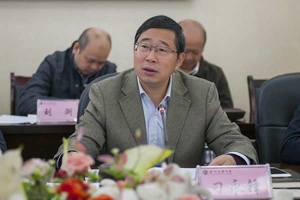 校长刁永锋作《坚持依法治校 强化规范管理 着力推进现代化大学制度建设》的专题汇报。刁永锋从规范完善管理体制和运行机制、依法治校取得的突出实效和尚待解决的问题等方面做了详细的汇报。他指出我校接下来的努力方向:一是进一步增强依法治校的政治意识和责任意识,深入扎实开展各项依法治校工作;二是紧密结合广大师生需求,深入开展各项法治宣传教育工作;三是进一步加强依法治校工作科学研究,着力推出一批具有实践指导意义的理论成果。