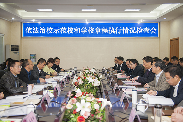 党委书记王成端致欢迎辞,并对我校开展依法治校工作的基本情况作简要介绍。他说,教育厅组织的本次检查,是我校进一步改进依法治校工作的一次大好机遇。学校一直以来非常重视依法治校工作,全面贯彻教育部《全面推进依法治校实施纲要》和上级依法治校工作要求,加强依法治校工作的组织领导。学校坚持依法治校、依法治教,依法行政,进一步完善各项规章制度,大力宣传依法治校,把依法治校理念贯穿立德树人的全过程,全方位落实到各项具体工作中,树立师生法治意识,营造良好校园氛围。他恳请各位专家对我校依法治校工作把脉问诊,提出整改意见和改进措施,帮助我校加快整改,提高依法治校工作能力和水平,为早日建成特色鲜明、优势突出的高水平、应用型大学提供坚实保障和强大动力。