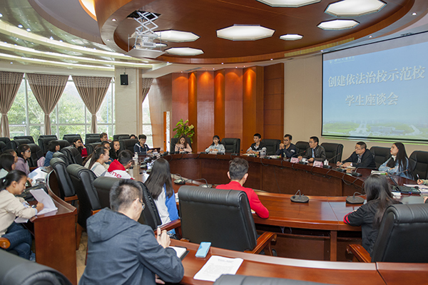 专家组分小组查阅我校依法治校工作的文献资料,分别召开教师座谈会和学生座谈会,了解师生对学校规章制度、管理体制、法治宣传、学生权益以及氛围营造等方面情况,了解师生对学校各项管理制度知晓情况和对学校推进依法治校工作的认识和看法。