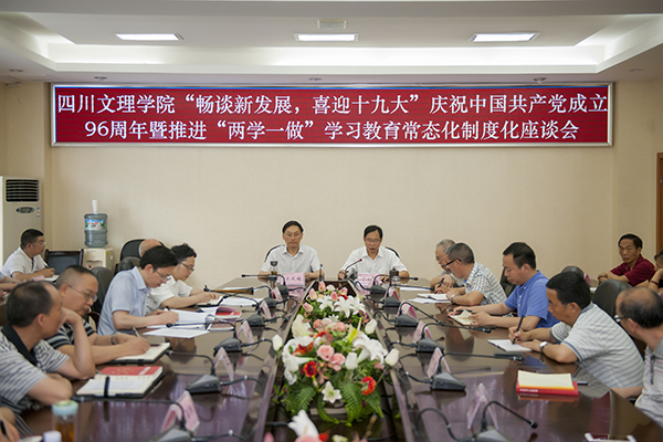 6月30日下午,学校在莲湖校区召开“畅谈新发展,喜迎十九大”纪念建党96周年暨推进“两学一做”学习教育常态化制度化座谈会。党委书记王成端、党委副书记、校长刁永锋、党委副书记侯忠明、副校长徐晓宗,学校退休老领导王绍琪、胡孝章出席了座谈会。