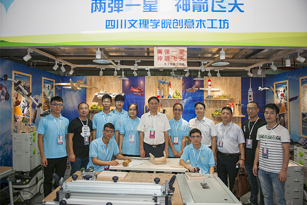 我校选送的校领导书法摄影作品亦全部获得一等奖,获奖作品以恢弘的气势、独特的视觉展现了祖国的壮美河山和文化的灵秀,给人以美的视觉享受。在艺术实践工作坊展区,我校的大学生制作的两弹一星的模型引得参观者驻足观赏和叫好。