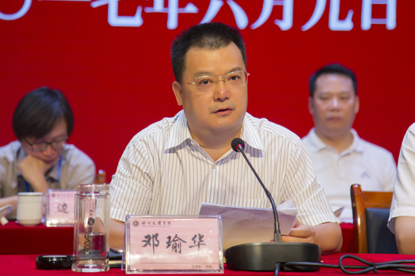 达州市委常委、宣传部长邓瑜华讲话指出,研究院的成立,既是四川文理学院发展史上的一件盛事,也是川陕革命老区各市州发展史上的一件喜事,必将极大地促进红色文化研究和区域经济发展。今后研究院在五个方面重点着力:一是找准川陕革命老区的发展定位和主攻方向,为川东北经济区建设和达州区域中心城市建设提供更多高质量的决策参考;二是深入研究区域开发和精准扶贫,推进革命老区发展示范区建设,在全国形成先进经验;三是深入研究清洁能源、特色农产品生产加工和军民融合等产业培育课题,助推川陕革命老区特色优势产业发展;四是深入研究红色文化,扩大文化影响;五是深入研究生态文明建设,利用后发优势,平衡推进经济建设和生态文明建设,探索绿色、环保、高效的发展新路。