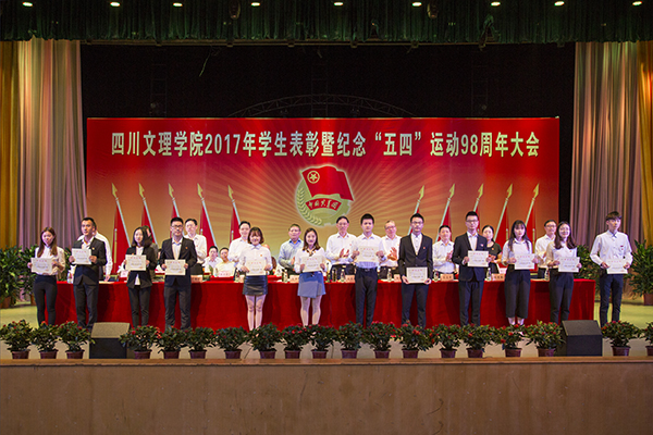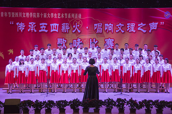 纪念暨表彰大会结束后,还举行了庆祝“五四”青年节四川文理学院第十届大学生艺术节“传承五四薪火·唱响文理之声”歌咏比赛。十二支参赛队伍先后登台倾情演绎《四川文理学院校歌》及其它精心准备的歌曲。经过激烈的角逐,文学与传播学院合唱团演唱的校歌及《迎风飘扬的旗》受到了评委及现场观众的一致好评,荣获一等奖。康养产业学院的《在太行山上》、教师教育学院的《走进新时代》并列获得二等奖,建筑工程学院生态旅游学院的《天耀中华》、财经管理学院的《光荣与梦想》、智能制造学院的《走向复兴》并列获得三等奖,音乐与演艺学院获得本次大赛“特殊贡献奖”。