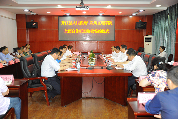 5月18日上午,学校与开江县人民政府签署全面合作框架协议,校长王成端与开江人民政府县长周建平签署合作协议。开江县委书记罗建主持签约仪式。