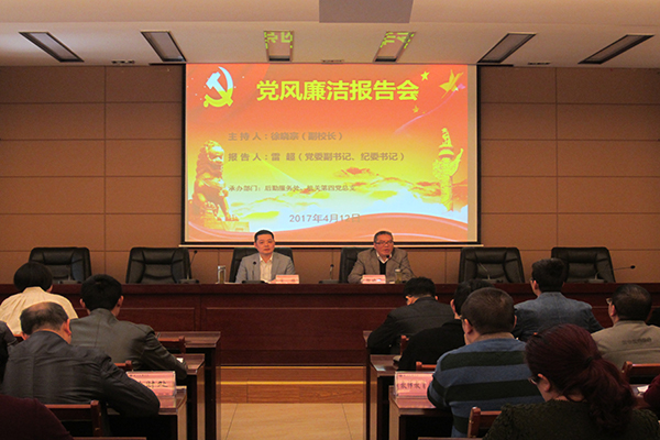 4月12日下午,机关第四党总支举行党风廉洁报告会,党委副书记、纪委书记雷超应邀为机关第四党总支、继续教育学院、教师教育学院、文化与传播学院作党风廉洁报告,副校长徐晓宗主持报告会。