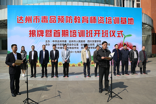 本次活动由中共达州市委、达州市人民政府、四川文理学院主办,达州市禁毒委员会、达州市公安局、达州市教育局、四川文理学院校地合作处、教师教育学院承办。市财政局、市发改委、市卫计委等单位负责同志、来自全市高完中的首期培训班全体学员及我校师生代表参加仪式。