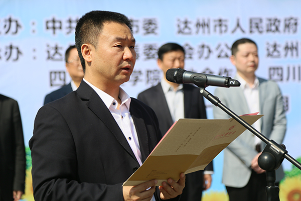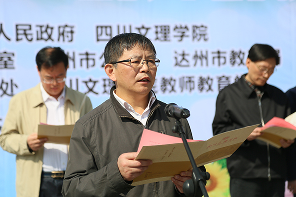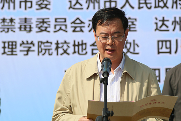 市委副秘书长、市禁毒委副主任牟道勇在揭牌仪式上宣读《达州市禁毒委员会办公室关于确立达州市毒品预防教育师资培训基地和青少年毒品预防教育示范学校的通知》。