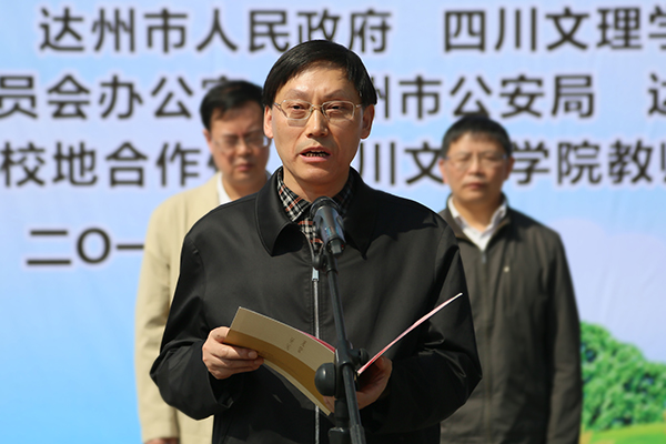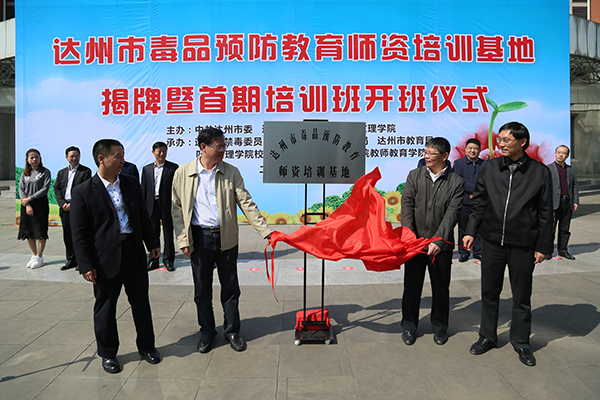 市委常委、市禁毒委主任吴立岩,副市长、公安局长王景弘,学校党委书记王洪辉,校长王成端为“达州市毒品预防教育师资培训基地”揭牌。