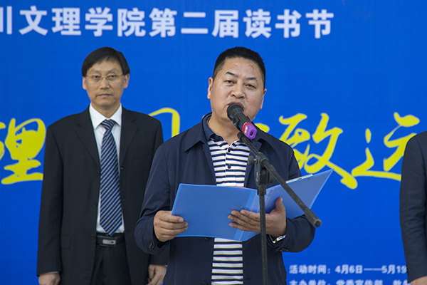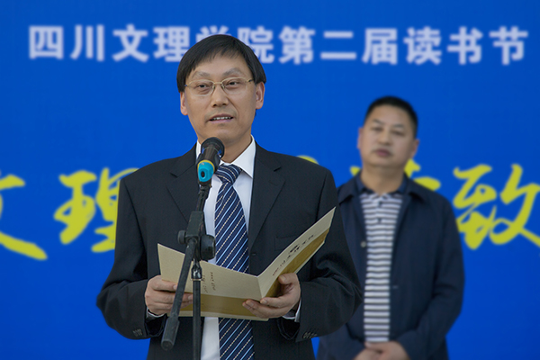 王成端致辞说,书是人类最宝贵的精神财富,在网络信息盛行的今天,广大师生容易形成浮躁的心态,忽略开启智慧、弘扬文明的经典阅读。作为承担文化传承与创新功能的高等学校,要在师生中形成浓郁的阅读风气、培养良好的阅读习惯和建设有四川文理学院特色的阅读文化,是培养“三心四能五复合”高素质人才,建设特色鲜明、优势突出的高水平大学的必然之路。为此,他提出了三点希望:一要培养良好的读书习惯,在人生最重要的积淀期,通过运动强健我们的体魄,通过阅读丰盈我们的灵魂;二要掌握正确的读书方法,学习借鉴古今中外众多学者的读书原则和方法,多读好书,在思考中读书,在实践中读书;三要营造良好的读书氛围,相关职能部门要把读书节办成校园文化活动的一个品牌,以读书节系列活动来带动、形成学校良好的读书氛围。