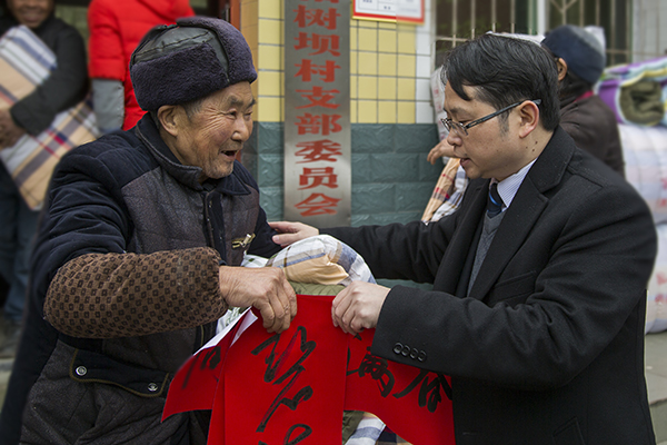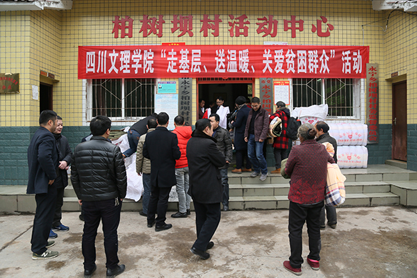 根据四川省委办公厅、省政府办公厅《关于切实做好困难群众安全温暖过冬工作的通知》(川委办发电〔2016〕20号)要求,把棉被、棉大衣迅速送到贫困群众手中,切实保障贫困群众安全温暖过冬。1月17日,学校党委书记王洪辉、党委副书记侯忠明、党委副书记、纪委书记雷超率校地合作处负责人及5位书法专业教师前往我校定点帮扶村——万源市永宁乡柏树坝村和茶垭乡老洼坪村开展 “走基层、送温暖,关爱贫困群众”及“文化扶贫——2017 送春联”活动。
