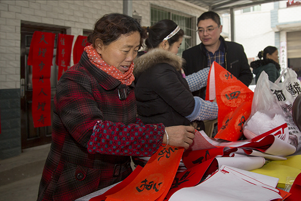 在老洼坪村,群众也争相领取春联,气氛热烈,现场书写并发放了400余幅春联。