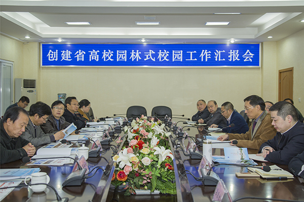 会上,校长王成端做工作汇报,他热情的欢迎省教育厅创建高校园林式校园专家组一行的到来,并希望各位专家对我校创建园林式校园建设工作把脉会诊,提出宝贵意见。他说,学校以达州市创建四川省森林城市为契机,按照市绿化办公室有关绿化指标要求,积极加强绿化建设:新建一处,绿化一处;新建一条路,绿化一条路;新建一幢楼,绿化其周边。园林绿化工作取得了一定成绩。他从学校党政重视,组织机构健全;重视绿化投入,管护经费到位;规章制度健全,绿化管护到位;景观园林彰显特色,绿化美化效果凸显;绿化管理较为到位,机械化程度基本具备等六个方面向省教育厅专家组作了详细汇报。