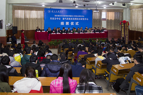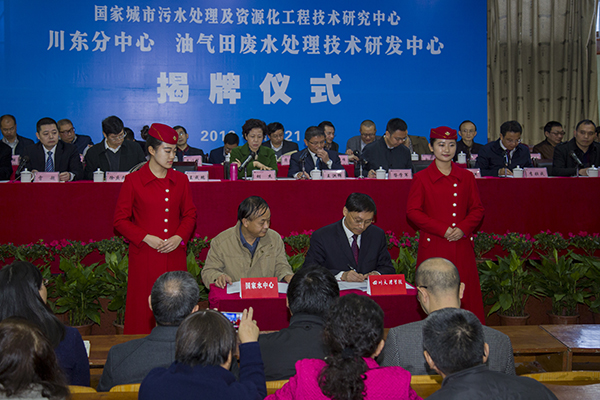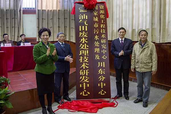 随后,胡杰副市长、李洪主任、王洪辉书记、王成端校长为川东分中心、油气田废水处理技术研发中心揭牌。