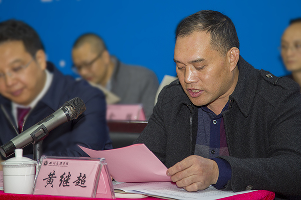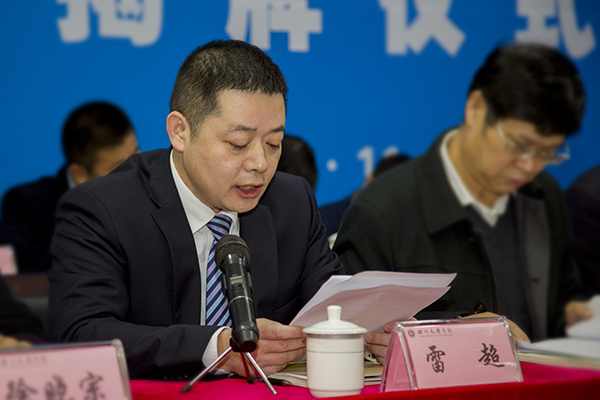 党委副书记、纪委书记雷超宣读《关于同意设立国家城市污水处理及资源化工程技术研究中心“川东分中心”和“油气田废水处理技术研发中心”的通知》、《四川文理学院成立川东分中心、油气田废水处理技术研发中心的通知》