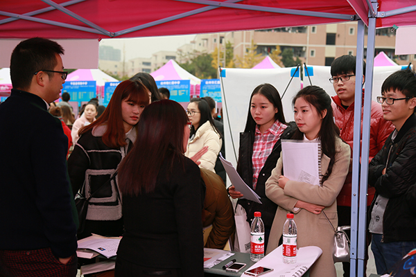 11月28日上午,2017届毕业生校园双选会在我校莲湖校区音乐广场举行。来自北京、广州、深圳、苏州、成都、重庆等地的173家单位参加了双选会,为我校毕业生提供了4561个就业岗位,共有812名毕业生与用人单位现场达成就业意向。党委书记王洪辉、校长王成端,莅临双选会现场为毕业生提供就业指导。
