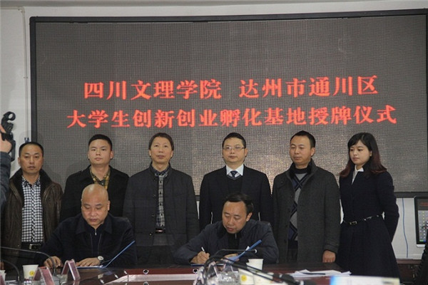 12月11日上午,我校大学生创新创业孵化基地挂牌通川区工业集中园区,这是学校在达州成立的第一家大学生创新创业孵化基地。校党委副书记侯忠明、通川区委书记杜海洋、达州团市委书记符静、通川区委常委兼区总工会主席何冰等出席签字挂牌仪式。