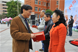 王成端为学校聘请的预防艾滋病教育工作指导专家颁发聘书。