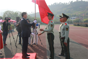 王洪辉、王成端代表学校向武警达州市支队赠送锦旗。