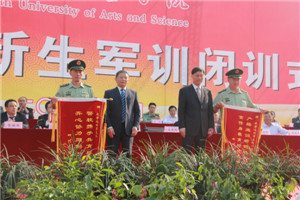 10月16日上午,学校2015级新生军训闭训式在莲湖校区田径运动场举行。党委书记王洪辉宣布军训团闭训并收回军旗,校长王成端讲话,党委副书记侯忠明主持闭训式。