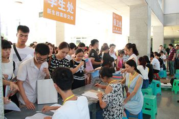 为方便新生办理入学手续,学校除了延续以往的一站式报到服务之外,还采用了网上缴费、银行卡预存代缴、现场缴费等多种方式减少报到流程,节省报到时间。对家庭经济困难学生,学校设立绿色通道,发放爱心礼包,并为他们讲解各项资助政策,解除求学后顾之忧,确保每一名新生顺利入学。