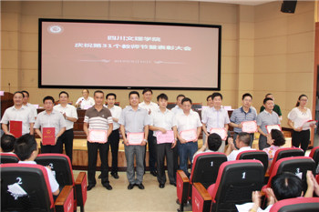 9月10日下午,学校在莲湖校区图书信息大楼学术报告厅A厅,举行庆祝第31个教师节暨表彰大会,大会表彰了在教学、科研、管理工作中的先进集体和个人,对今年晋升正高职称和获得博士学位的教师给予奖励,并向在高校工作满30周年的教师颁发纪念品。
