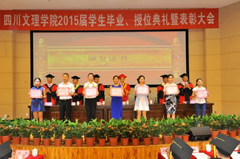 在庄严的国歌声中,2015届学生毕业、授位典礼暨表彰大会拉开了帷幕。侯忠明宣读《四川省教育厅关于公布2015届四川省优秀大学毕业生评选结果的通知》、《四川文理学院关于表彰2015届优秀大学毕业生的通知》和《四川文理学院关于表彰2015届本科优秀毕业论文(设计)获奖者的通知》。他希望获奖的毕业生再接再厉、开拓进取,再创喜人业绩。