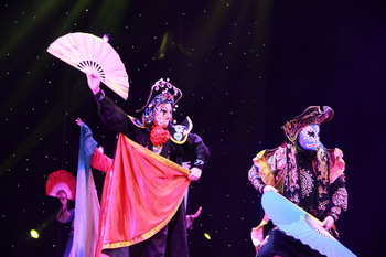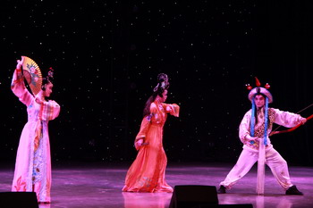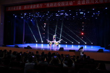 演出首先由四川艺术职业学院青年教师表演的《花荣射雕》拉开序幕。随后,该院师生表演了川剧清唱《嫩豆花》、独舞《花儿》、川剧片段《死水微澜》、杂技《柔术灵动》和《川剧集萃》等节目。其中《柔术灵动》以其柔韧的身躯和高难度的动作引起了现场观众的不断喝彩声和惊叹声,《川剧集粹》展现了川剧的经典技艺变脸,表演者以闪电般的动作和精彩的表演技法,将整场演出活动推向了高潮,给全体观众留下了深刻地印象。