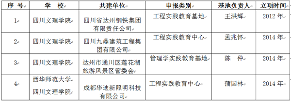 近日,四川省教育厅公布了2014年省级大学生校外实践教育基地的名单(川教函[2015]191号),我校申报的3个大学生校外实践教育基地获得立项,至此我校省级大学生校外实践教育基地总数已达4个。具体名单如下: