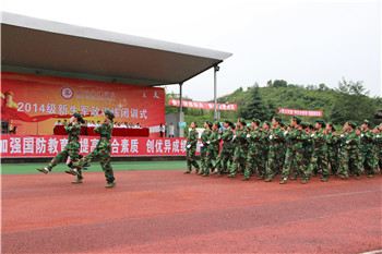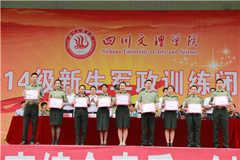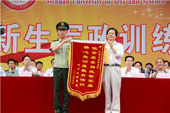 9月19日上午,我校2014级新生军政训练闭训式在莲湖校区运动场隆重举行。党委书记李万斌代表学校向武警达州市支队赠送锦旗并感谢支队官兵的辛勤付出,校长孟兆怀讲话,党委副书记侯忠明主持闭训式。 随着激昂的进行曲响起,45个参训方队迈着整齐矫健的步伐,喊着响亮的口号,精神抖擞地通过主席台接受检阅,充分展示了2014级新生军训成果和朝气蓬勃的良好精神面貌。分列式表演结束后,承训教官表演了擒敌拳,他们虎虎生威的动作、敏捷矫健的身手,赢得了现场师生的阵阵喝彩。 党委副书记李佳国宣读军训表彰决定。闭训式对文学与新闻学院等8个先进集体、包志国等9名先进个人以及谭程莲等301名优秀学员进行了表彰。 孟兆怀代表学校党委和行政向武警达州市支队全体官兵表示崇高的敬意和衷心的感谢,向顺利通过军训考验的2014级新同学表示热烈的祝贺,向各位教导员、指导员老师表示亲切的慰问。他说,军训期间,全体承训教官充分发扬了武警官兵吃苦耐劳、雷厉风行、连续作战的优良作风,严格按照学校的训练计划和要求,尽职尽责,科学施训,出色地完成了军训任务。全体参训学员通过为期近10天的军训,不仅强健了体魄,提高了身体素质,同时也经历了一场思想觉悟、纪律作风和意志品质的洗礼,取得了明显进步。他希望同学们把军训养成的优良作风和宝贵品质带到今后的大学生活中,努力学习,勤奋上进,勇攀高峰,追求卓越,成为博学多才的智者,成为坚定顽强的勇者,成为智勇双全的强者,为实现中华民族伟大复兴的中国梦做出自己应有的贡献。 军政训练组织实施单位、学生工作部(处)负责人陈官章从军训的前期准备、组织实施,以及学员的参训情况和取得的成果作工作汇报。 最后,整个闭训式在全场师生齐唱《歌唱祖国》中圆满结束。 武警达州市支队副参谋长张礼波中校,副校长李壮成、徐晓宗及相关职能部门负责人、各二级学院党总支书记出席闭训式。