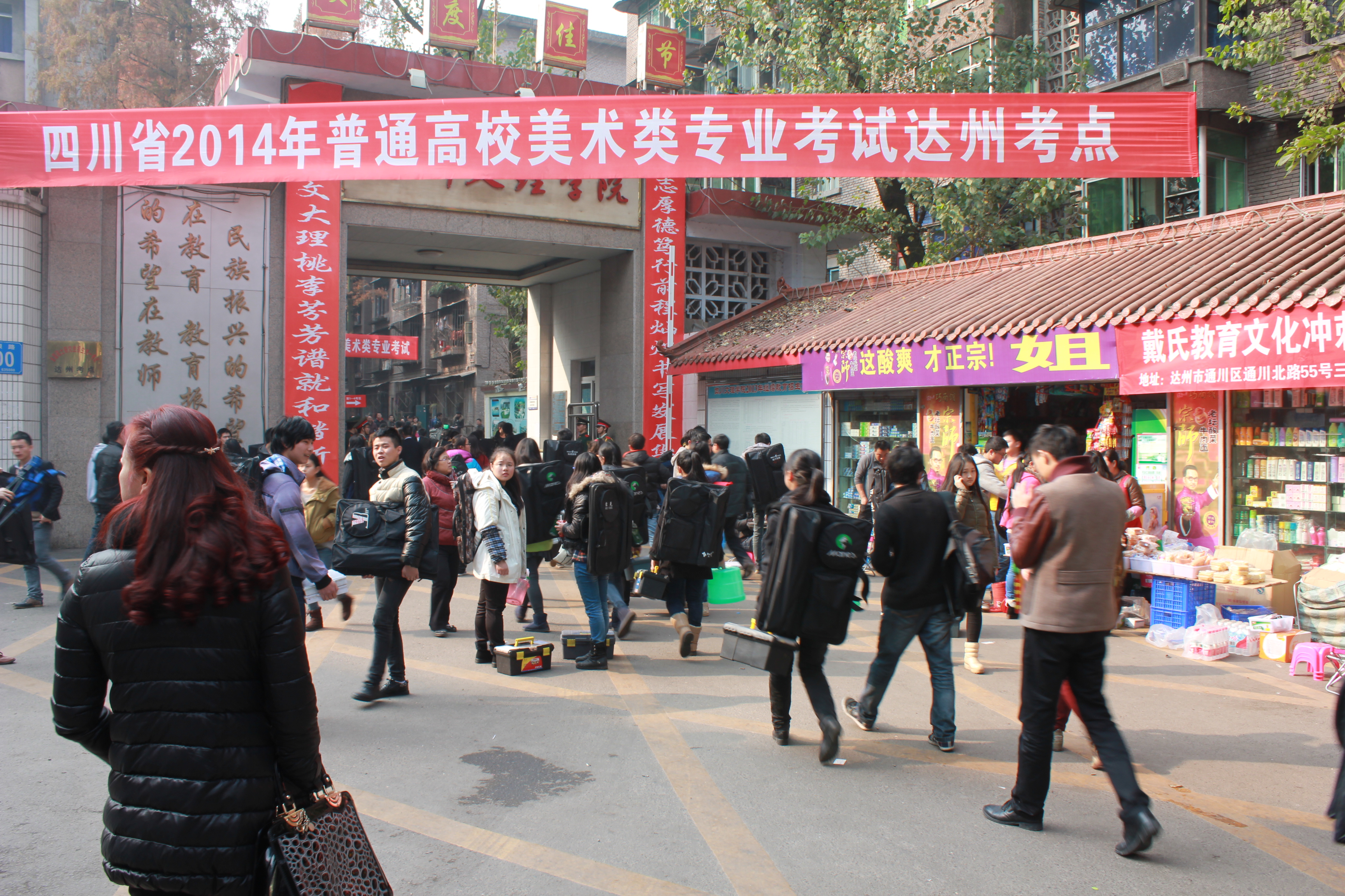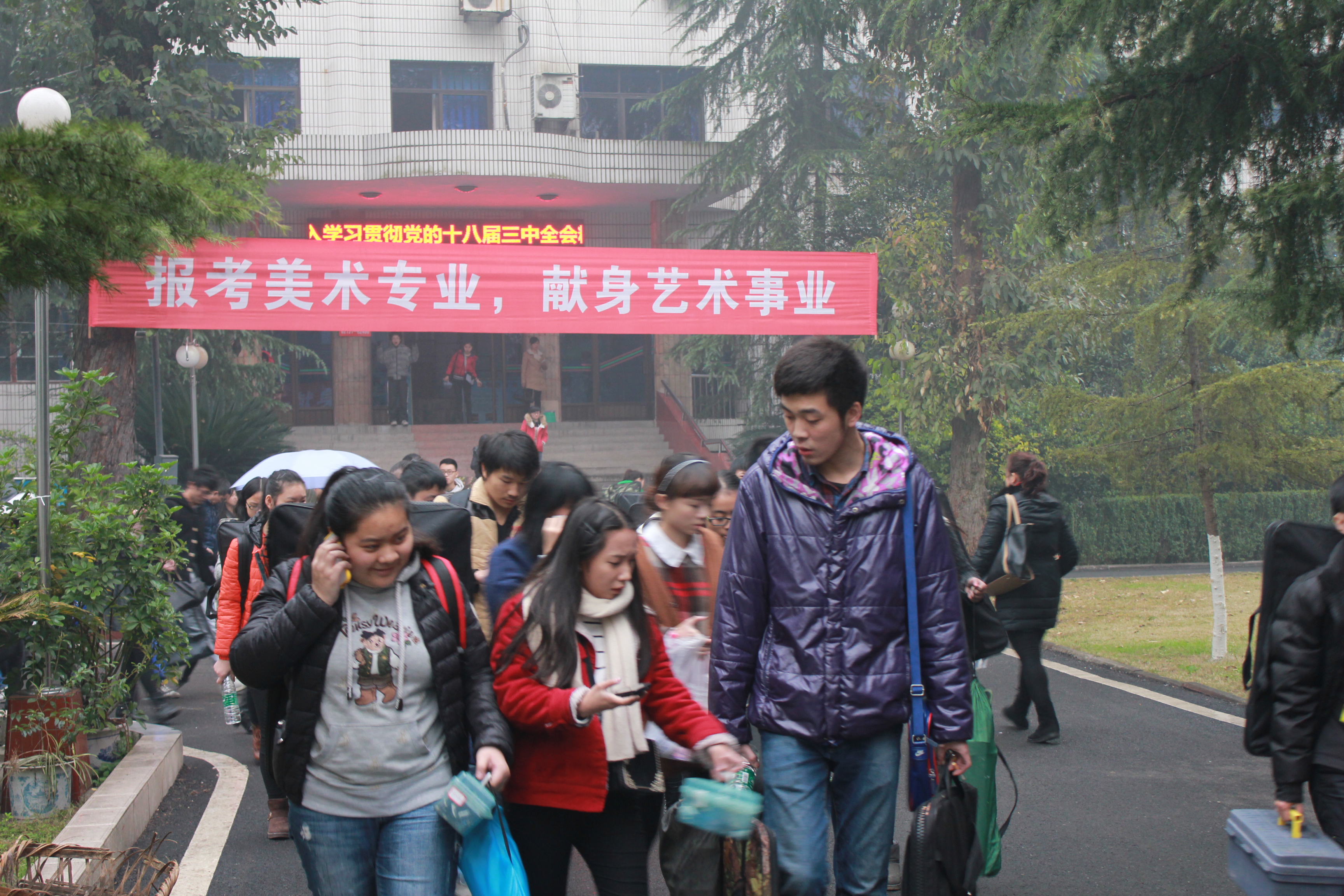 12月7日至8日,四川省2014年普通高校美术类专业考试如期举行,达州市各县区共4300多人在我校南坝校区参加色彩、素描、速写三科目的美术类专业考试。 为确保考试顺利进行,学校成立了考务工作领导小组,负责统筹、部署各项工作。考务办公室下设有报名组、试卷组、技术指导组、纪检组、后勤保障组、医疗卫生组等各小组。7日下午2:00,当开考铃声响起后,各考区监考教师按考场指令当众开启试卷,逐一验证考生信息并分发试卷,严格按考试流程做好每一项工作。考生认真审题,严谨作画,考场秩序井然。本着为国选才、为社会负责的态度,本次考试中,在人员安排布置、仪器设备采用等方面进行了科学合理的部署,严防各类考试舞弊行为。 学校同时还积极加强与省教育考试院、市招办、武警、交警、公安等部门的联系,在考试安排、交通保障、安全保卫等方面确保达州考点考务工作顺利进行。
