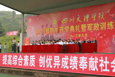 9月10日上午,2013级新生开学典礼暨军政训练开训式在莲湖校区运动场隆重举行。校长孟兆怀向全体新同学介绍学校的办学历史和取得的成绩并对他们的大学生活和军政训练提出殷切希望。党委副书记李佳国主持仪式并宣读《四川文理学院关于成立军政训练领导小组的通知》。