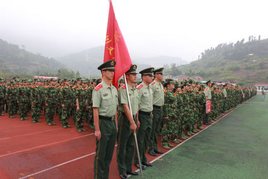 军政训练团团长、武警达州市支队副参谋长刁先洪中校代表承训部队官兵讲话,要求全体参训教官按照“严格训练,严格要求”的方针,认真对待,大胆管理,科学施训,高质量地完成本次军训任务;希望参训学员把军训当做锻炼体魄、磨练意志的难得机会,以优异的军训成绩和良好的精神面貌充分展现当代大学生的风采。