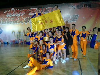 近日,“新筑杯”2013年四川省高校大学生健康活力大赛在西南交通大学隆重举行。我校体育学院2011级健美操专业学生分别参加了技巧啦啦操和街舞啦啦操的比赛。比赛中,同学们舞步激情四射,动作整齐划一,赢得评委的一致好评。最终,我校健儿在三级技巧啦啦操自编套路专业组和街舞啦啦操专业组中分别取得专业组第一的好成绩,并荣获大赛最佳组织奖;教练唐绪明被评为“新筑杯”2013年四川省高校大学生健康活力大赛最佳教练员,刘伟、冯秋红同学被评为本次大赛优秀运动员。