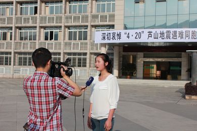 达州电视台对我校的默哀活动进行了采访报道,一位青年学生在接受采访时表示:汶川地震和雅安芦山地震都震不倒坚强的四川人民,对芦山地震遇难的同胞我们表示沉痛的哀悼,同时希望活着的人们坚强挺立,重建家园,在全国人民的帮助下重新创造幸福美好的生活。