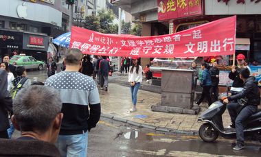 上午9点30分,我校十多名青年志愿者与晚报记者一起,头戴小红帽,手持“陪你等红灯”红色条幅,在达州人流密集的通川区中医院、华夏酒店及通川桥北头路口,和行人一起等红灯,让等红灯的市民感觉不孤单,也让那些惯闯红灯的市民学会文明过马路。在华夏酒店附近路口,个别闯红灯的行人在志愿者的劝导下,都自觉的退到斑马线外等候信号灯。一位背着孙子的大妈说:“身边的人都在自觉等红灯,我本来有急事也不好意思闯红灯了!”
