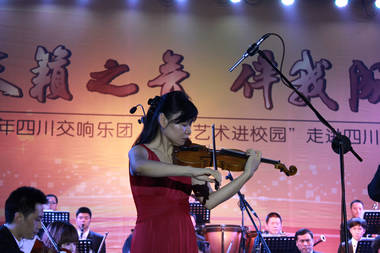 四川交响乐团组建于2002年,是经省政府批准,独立建制的职业交响乐团,拥有一批充满活力的中青艺术家,曾担当纲多明戈成都演唱会,卡雷拉斯重庆新年音乐会现场伴奏等。团长石勇说,交响乐团高雅艺术进校园,走进宽敞漂亮的四川文理学院,感到非常高兴,为了让大家欣赏到世界水平的音乐艺术,此次演出特邀请到了国际著名的小提琴演奏家黄滨女士和川籍旅美指挥家刘江先生。