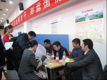 2011年3月11日,应中国农业大学邀请,根据《四川文理学院2011年人才需求计划》,我院由孟兆怀院长、王洪辉副院长率领人事处、科技处等部门领导参加了由中国农业大学主办、北京市几十所重点高校参与的大型研究生“双选会”。