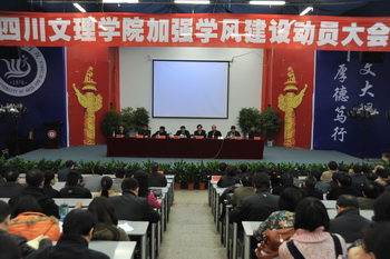 党委书记李万斌宣读了《四川文理学院关于成立校风学风建设领导小组的通知》,决定成立由李万斌书记、孟兆怀院长任顾问,李佳国副书记任组长的校风学风建设领导小组。