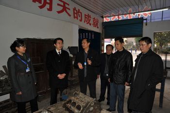 达州市高级技工学校校长蹇明香陪同孟院长察看了该校的模具制造教学实训场地、数控机床室、汽车维修室、电子信息实验室等教学场地和实验教学设备。