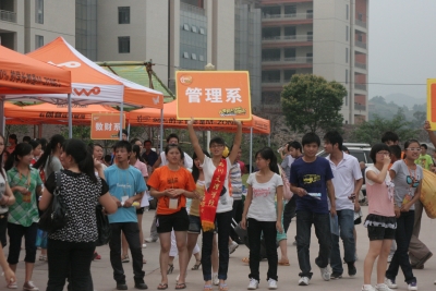 新生报到,办理入学手续是最重要环节。各个系组织学生志愿者近百人,专门负责迎新过程中的接待、引路、答疑和搬运行李等工作,为新生提供最方便的服务和帮助,新生从踏进校门那一刻起就能够感受到学校和老师对他们的欢迎和关心。他们热情、周到、耐心的服务受到了新生及家长们的一致好评。 由于各环节流程设计合理、简捷高效,家长和新生对此都很满意,新同学们对自己的新学校也有了一种回到家的感觉。