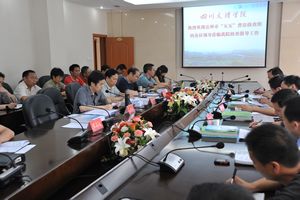 6月17日下午,达州市“五五”普法检查组第三小组在组长、市政协社法群委主任赵本春的带领下来到我院,检查验收“五五”普法工作。我院在在莲湖校区行政楼四楼会议室举行了“五五”普法工作汇报会会。学院党委书记李万斌教授,院长孟兆怀教授,党委副书记、纪委书记、工会主席李佳国教授,副院长张志远教授以及机关相关职能部门、各系部党总支负责人,法学师生代表出席会议。汇报会由院长孟兆怀教授主持。