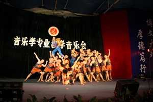 音乐会在器乐合奏《欢乐颂》中拉开帷幕。欢快的群舞《麻辣俏幺妹》、优美的女生小合唱《打双麻窝子送红军》独具川东特色,赢得在场观众的掌声。专家组成员、省教育厅高教处处长周雪峰受到感染,上台深情朗诵由他创作的诗歌《其实》,并盛情邀请我院音乐系姜星名老师一同演唱了歌曲《为了谁》,将此次晚会推向高潮。二胡齐奏《奔驰在千里草原》让我们感受到了奔驰在草原的无限魅力,展现了音乐学08级同学的高超演奏水平。男声四重唱《弯弯的月亮》、《游击队歌》,女声独唱《断桥遗梦》、《蓝色爱情海》,群舞《古色青云》等节目异彩纷呈。一曲曲动听的歌声饱含深情,一段段动人的舞蹈优美婀娜,使得全场掌声雷鸣。晚会最后在曾获得过首届全国大学生艺术节一等奖的群舞《大巴山抬工汉》的震撼中完美落下帷幕。